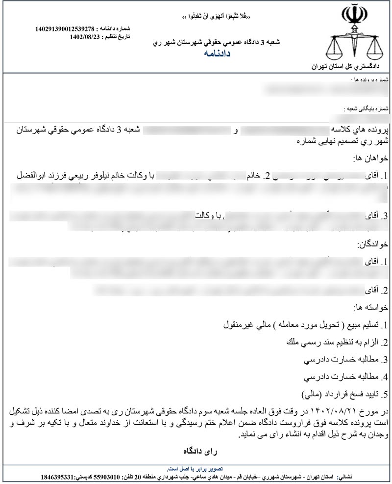 وکیل ملکی شمال تهران